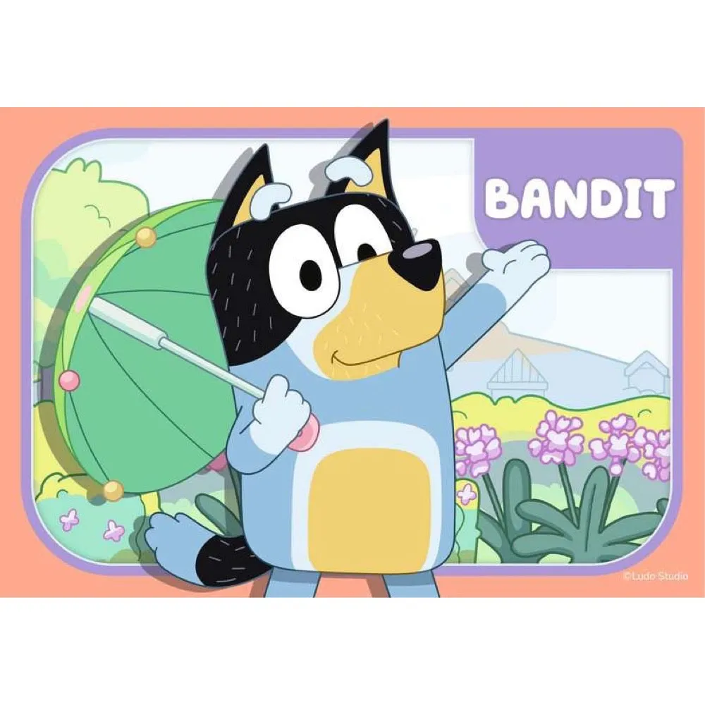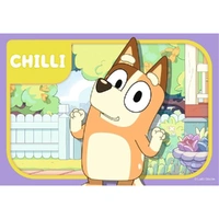 Join Bluey, Bandit, Bingo and Chilli as you piece together these four, bright and colourful jigsaw puzzles. Starting with a 2 piece puzzle and finishing with a 5 piece puzzle, this puzzle pack is a great starting point for any child starting out with their puzzling experience with a progressive piece count! This is a must have item for any Bluey fan.