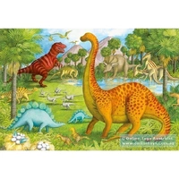 Discover super-sized fun with Stegosaurus, Triceratops, Brontosaurus, T-Rex and more with our Dinosaur Pals” 24-piece floor puzzle!