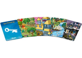 Players search their illustrated cards each turn for a specific hidden object, discarding cards as they find matches.
