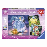 Product Details A collection of everyone’s favourite Disney film princesses are now gathered together in this fun Ravensburger Puzzle designed to engage with every little puzzler. With three Disney Princess themed puzzles, kids are sure to find their favourite character as they pieces together these colourful, fun and beautifully illustrated puzzles. Kids will learn observation, shape-matching and imagination skills whilst being entertained by pictures of Disney films. Look for more 3x49pc Square Puzzles from our Disney Collection.