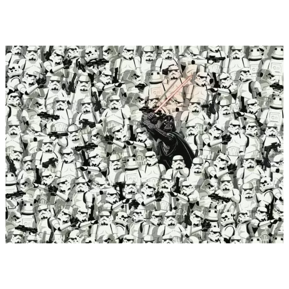 Fulfill your destiny and give in to the Dark Side to complete our “Challenge Puzzle Star Wars”! Search your feelings (and through a thousand puzzle pieces) to bring Lord Vader his life-sustaining armor and lethal light saber! An homage to the original movie trilogy, our illustration portrays Darth Vader as he appeared in A New Hope, The Empire Strikes Back, and Return of the Jedi. With over 100 Stormtroopers protecting him, this mostly monochromatic puzzle collage will prove a challenge for novices and avid puzzlers alike, even those who are strong with the Force! Specification - Size: 70 x 50 cm - Pieces: 1000