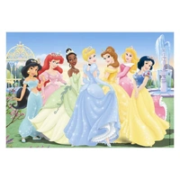 Piece together two amazing jigsaws featuring seven beautiful Disney® Princesses. Each 24-piece puzzle features Ariel, Princess Aurora, Princess Jasmine, Cinderella, Tiana, Belle and Snow White in classic poses. No two pieces are the same and each piece precisely fit together for a perfect join. Each puzzle is 26cm X 18cm in size when complete. • Manufacturer: Ravensburger® • Puzzles Included: Two (2) • Puzzle Pieces: 24 (each) • Dimensions: 26 x 18 cm (each) • Made in: Czech Republic (EU) Suitable for ages 4 years+