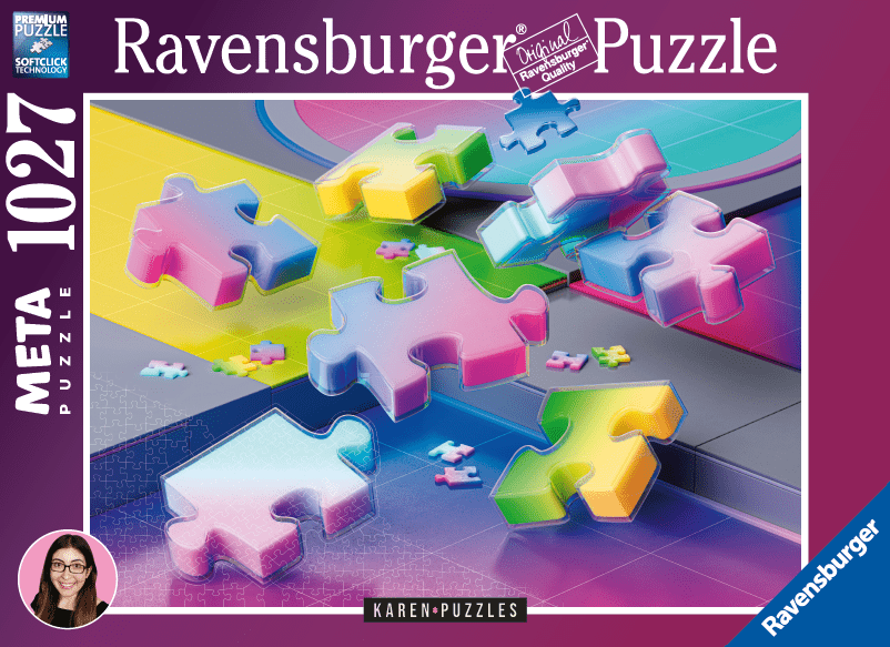 Get meta with a new release from Karen Puzzles! Our exclusive “Gradient Cascade” puts puzzles within the puzzle for a whole new dimension of fun! Leave it to YouTube host and jigsaw puzzle guru Karen Puzzles (aka Karen Kavett) to design a puzzle that’s actually seven puzzles in one! We collaborated with Karen and digital 3D artist-extraordinaire Wes Cockx to create a meta puzzle with a series of mini puzzles (the large falling puzzle pieces) within the larger field. Karen’s love of gradients and Wes’s ability to create stunning 3D worlds yielded this amazing image with glasslike textures and soothing yet vivid colors. Tackle it all at once or one mini puzzle at a time! Part of our Karen Puzzles Collection series, this 3D rendered art puzzle features mini puzzles within the larger puzzle. Our cutting dies are handcrafted in Germany, ensuring clean-cut pieces and a perfect interlocking fit for a most pleasurable puzzling experience. Create memorable moments with Ravensburger premium puzzles! About the Artist: A master at creating 3D art with such incredible dimension you want to reach out and touch it, Wes Cockx is a digital artist based in Brooklyn, New York. With 10 years of experience, Wes has created design and motion for a diverse range of clients in tech, advertising, editorial & fashion. He strongly believes in exploring and experimenting with visual styles, techniques and software to push the limits of a project as well as his own creativity. Specification - 1000 Pieces - Completed puzzle measures 70 x 50cm