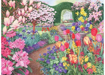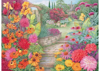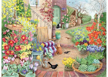 What's your favourite season of the year? Each of these aptly-named puzzles show that gardens can look fabulous, regardless of the time of the year. Spring Glory shows a blaze of colour from Clematis, Tulips, Magnolia, Wallflowers, Pansies and Geraniums, also offering us a tempting view of a pretty summerhouse. Summer Visitors reveals an artist's garden studio, set in a garden of Roses, Lilies, Lupins, Nasturtiums, Hollyhocks and Iris. In Autumn Glow a Labrador and spaniel play amongst the rich warm tones of Dahlias, Cannas, Echinacea and Helenium. And lastly Winter's End shows a cosy sitting place surrounded with Hellebores, Crocuses, Cyclamen, Dwarf Irises, Primulas, Jasmine and Japanese Quince. Product designed and developed in the UK. Specification - No. of Pieces: 4 x 500 - Puzzle size: 49 x 36cm - Age: 12+