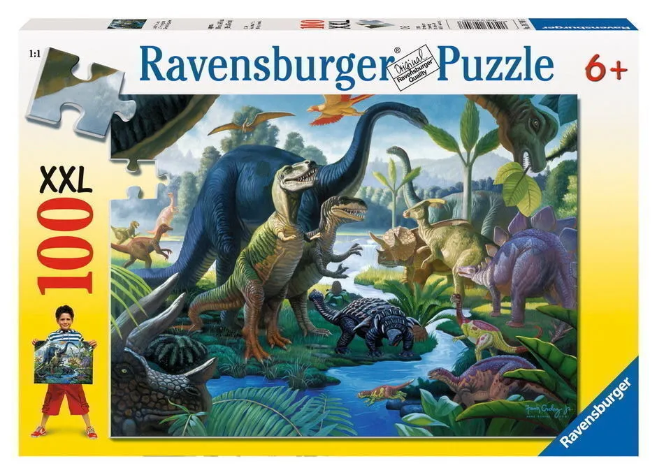 Realistic scenes from ancient times include volcanos and even Pterosaurs, the famous flying dinosaur. Look for more 100pc Puzzles from our Dinosaurs Collection.