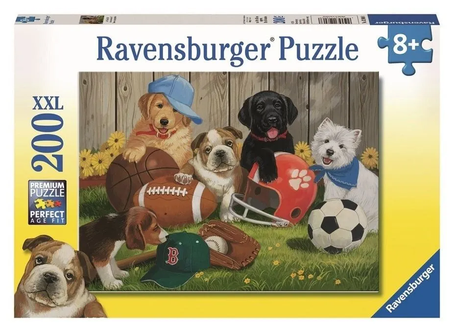 This is the Ravensburger Lets Play Ball Puzzle 200pc Our colourful collection of farm animals and friendly pets is designed to warm the hearts of every little puzzler. From cuddly kittens to beautiful cows, from quacking ducks to fleecy sheep, Ravensburger has every child's favourite! Ravensburger 200 piece Puzzles are carefully quality tested and age-graded for children aged 8 yrs+ Ravensburger is a bestselling puzzle brand worldwide - with over 1 billion puzzles sold! Our children's jigsaw puzzles make ideal birthday gifts for boys and girls alike and wonderful Christmas gifts for the whole family to enjoy together. Our puzzles are crafted from the best quality FSC premium and time-tested materials. By using exclusive, extra-thick cardboard, combined with our fine linen-structured paper, we create a glare-free puzzle image and give young puzzlers the best fun and learning experience possible. Positively puzzling - from fun and educational learning experiences to happy and relaxing together times, jigsaw puzzling offers many positives for the whole family or as a rewarding solo activity! Finished Puzzle Size: 57 x 24 cm