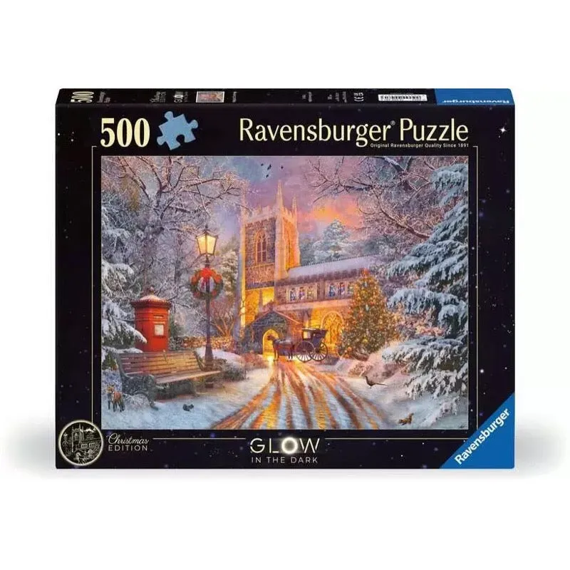 This Christmas scene could be straight out of a storybook. The horse and cart standing outside the quaint little church. The snow has fallen, coating the trees and creating a serene winter wonderland. The red fox darted out from behind a nearby bush, followed by a couple of curious squirrels and a plump pheasant. The church bells ring out, filling the air with the sweet sound of Christmas carols. So get into the festive spirit with this beautiful 500 piece jigsaw puzzle that glows in the dark! Our 500pc piece jigsaws are crafted with premium quality materials and measure 49 x 36cm when complete. Great for Adults and ideal puzzles for Children 10 years old and up. Fully complies with all necessary UK and EU testing standards. Bestselling puzzle brand worldwide - With over 1 billion puzzles sold, our jigsaw puzzles make ideal gifts for women, great gifts for men and fit perfectly on our puzzle board. Our puzzles use an exclusive, extra-thick cardboard combined with our fine, linen structured paper to create a glare-free puzzle image and give you the best experience possible. #Positivelypuzzling - From fun family times together to long term health benefits and day-to-day mindful moments, there are so many positives about the humble Jigsaw! They make a great birthday gift or smashing Christmas gift