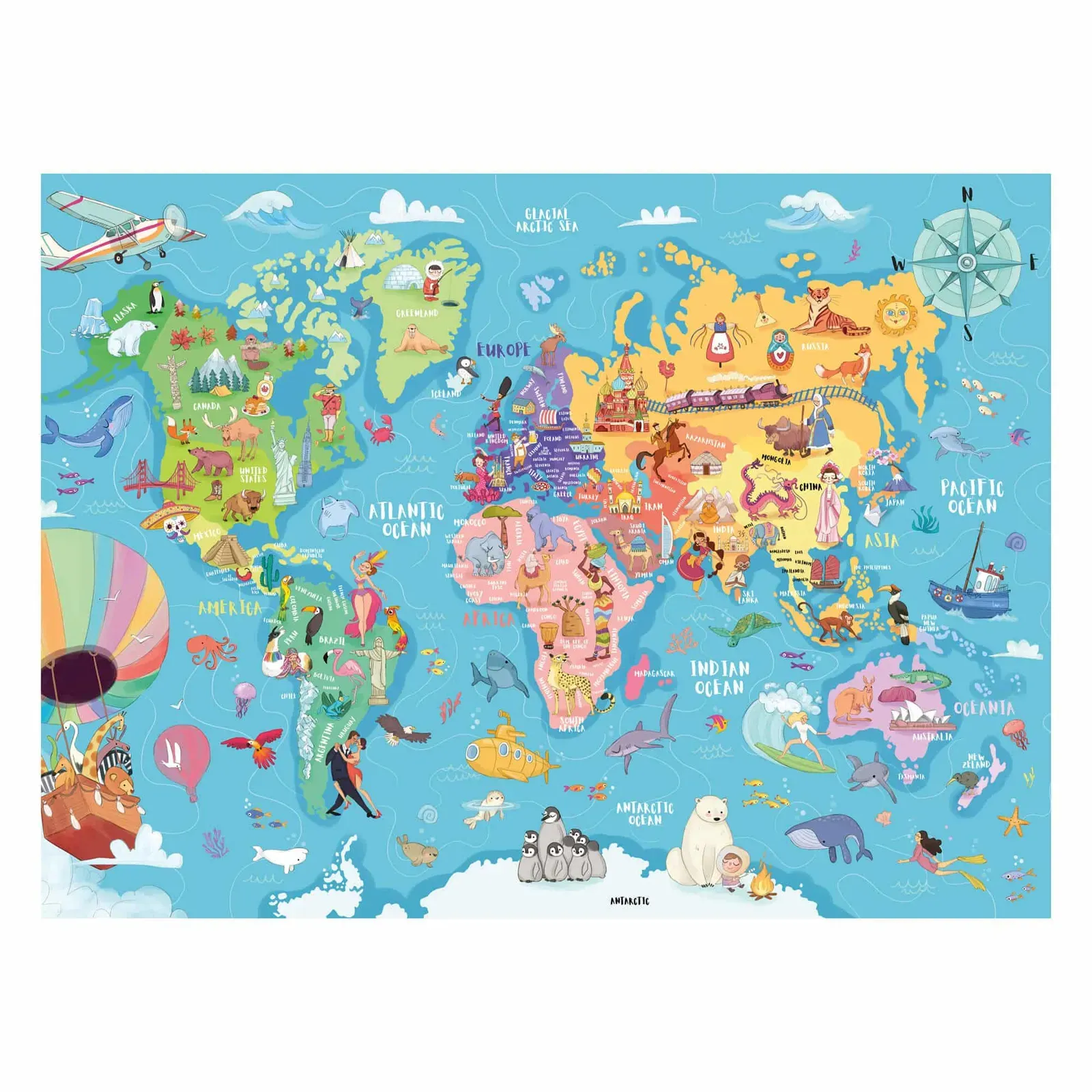 Features: Handmade cutting tools ensure that no two pieces are alike Pieces that really fit 100 pieces for a fun and challenging puzzle experience Made from high-quality materials for durability Strong pieces that don’t break Enhances geographical knowledge and problem-solving skills Fosters curiosity and love for exploration Great gift for young adventurers Measures 36cm X 49cm when complete. Suitable for ages 6 years+