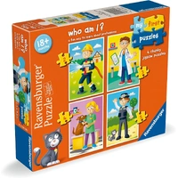 Can you identify their profession based on their uniform and equiptment related to their jobs? Ravensburger 4 in a box kids puzzles are crafted with premium quality materials.