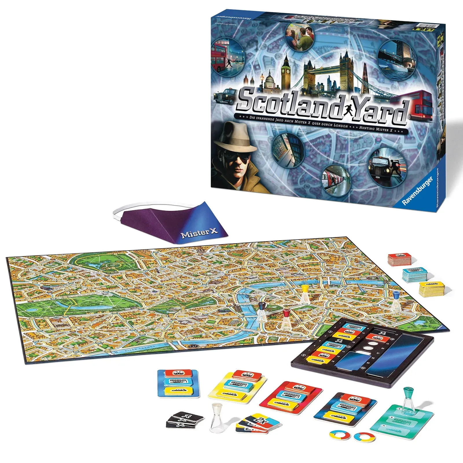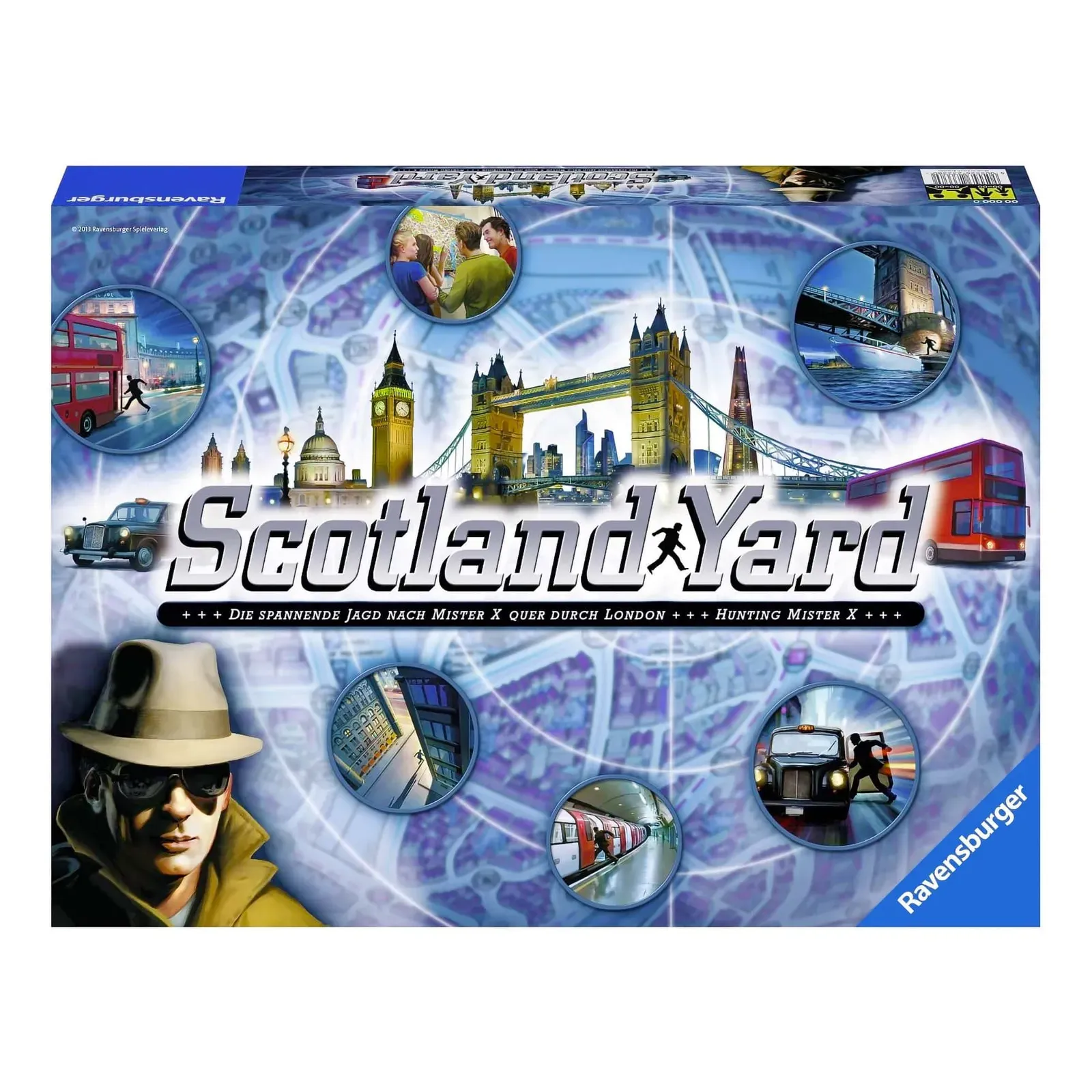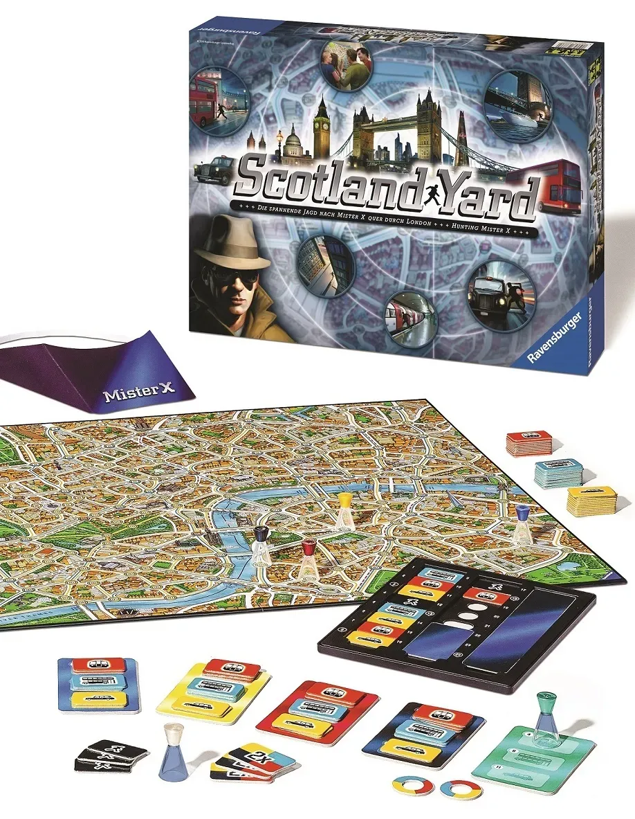 The chase is on! Trap Mr X to win! There is a tough case for the detectives at Scotland Yard: Mister X is on the run, and has gone to ground in London. Now it’s time to reconstruct his escape route and recapture him as quickly as possible. The detectives set off on an exciting chase all around the English capital city. The Ravensburger classic Scotland Yard unites players of all ages, and provides endless excitement and thrills. The original version of Scotland Yard was named Game of the Year in 1982, and the reissued version of 2013 promises to be just as much fun.
