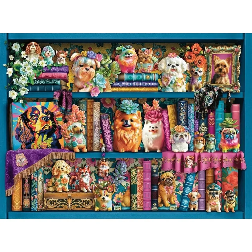 Delight in the charming elegance of Ravensburger’s Precious Porcelain Pups puzzle. This 500-piece jigsaw showcases a cosy library scene where intricately crafted porcelain puppies nestle among shelves of timeless books. Featuring artwork by Brigid Ashwood, the puzzle beautifully captures the fine details of delicate figurines and rich textures of classic bookbindings.