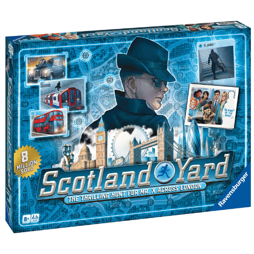 Scotland Yard is a classic game from the 90s that is still popular today. In the game, Scotland Yard chases the mysterious criminal Mister X through London. The chase takes place throughout the city and the detectives must work together to find him.