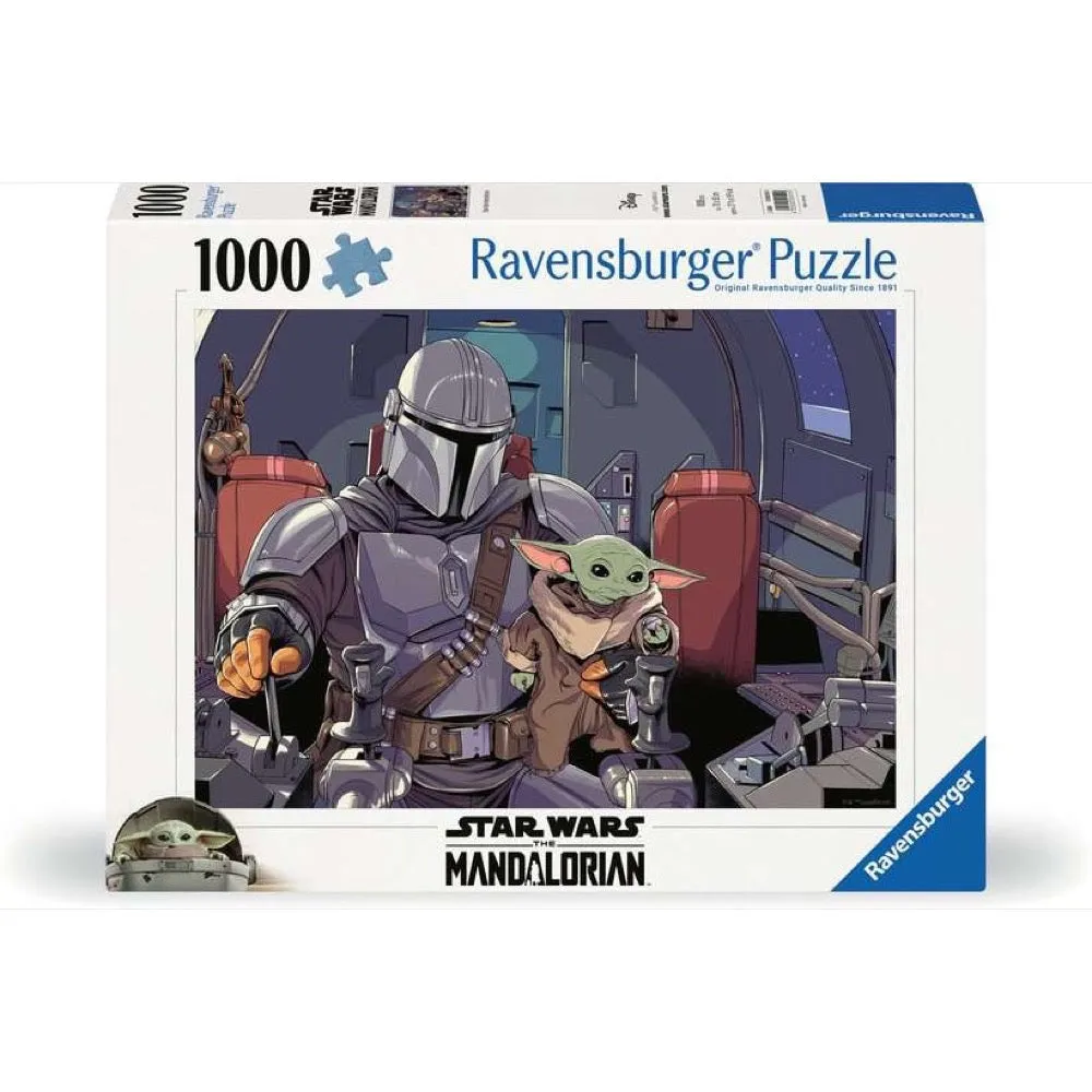 This is the way…to out-of-this-world puzzling fun with The Mandalorian! Travel the galaxy with the Mandalorian in his search for Grogu’s people and safety for The Child! Our illustration shows Din Djarin, the Mandalorian bounty hunter, in the cockpit of his ship Razor Crest with Grogu, aka Baby Yoda. Mando takes his role as father-figure to heart in his efforts to protect Grogu from Moff Gideon and others who would do him harm. He even allows the Child to play with the spherical gear knob from his ship! A fun puzzle for any fan of the Disney+ series! This 1,000-piece jigsaw puzzle combines captivating imagery with clean-cut pieces and Ravensburger’s perfect interlocking fit for a most pleasurable puzzling experience. Create memorable moments with Ravensburger premium puzzles! Specification - No. of Pieces: 1000 - Puzzle size: 70 x 50cm - Age: 14+