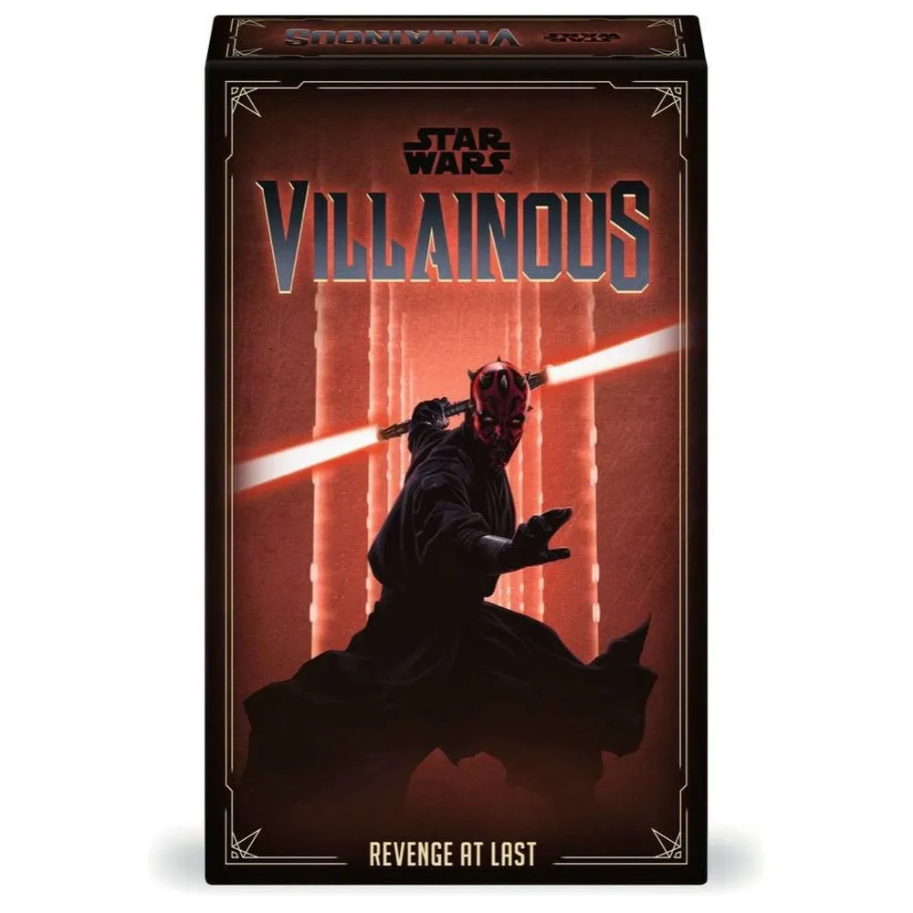 Darth Maul and Captain Phasma join Ravensburger’s award-winning game system in this “expandalone” box that can be played on its own or combined with any Star Wars Villainous title! Be the first Villain to achieve your objective to win. Each Villain’s deck of cards is designed with a gameplay strategy inspired by the film, shows, and media you love. Wield their cards well to plot, scheme, and conquer your way to victory in this immersive game for the Dark Side. The heart of gameplay is simple. Move your Villain’s sculpted mover to a new location on their sector board to access the actions at that location. Use actions to play your cards, move closer to your objective, and draw from your opponents’ Fate deck disrupt their carefully made plans with meddling heroes. How will you manipulate your abilities to dominate the galaxy? Villainous games are known for their immersive game design, custom illustrations of iconic Star Wars heroes, evil alllies, and scenes, and artful sculpted movers. Star Wars Villainous adds to the award-winning system unique currencies, bounties, ships, and game mechanics unique to the Star Wars galaxy. Specification - Number of Players: 2 - 3 - Age: 10+ - Box size: 17 x 27 x 7 cm - Playing time: 20 - 40 min Contents - 2x sectors, 2x villain movers, 60x villain cards, 30x fate cards, 60x tokens, 2x reference cards, 2x villain guides, instructions