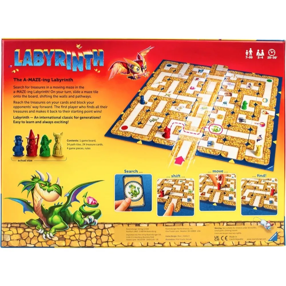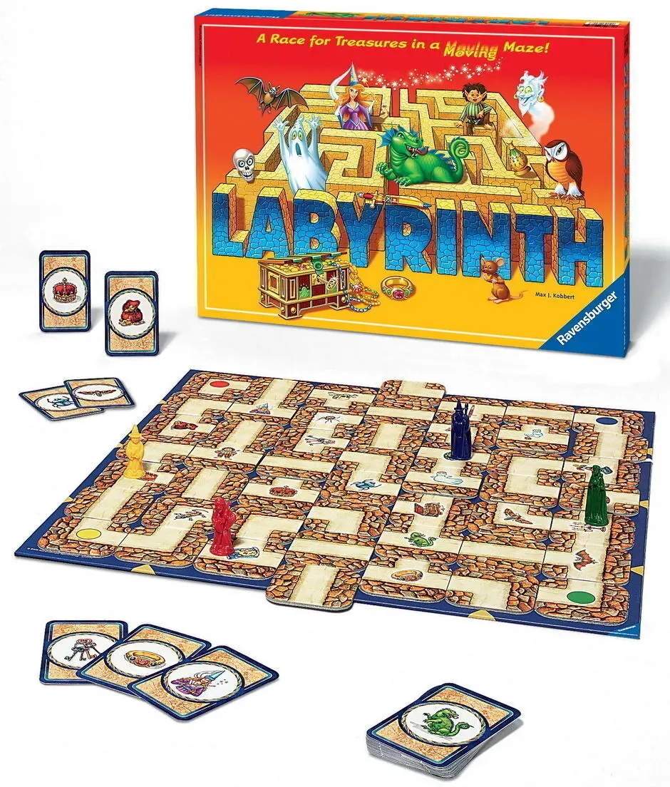 Race for treasures in a moving maze! Be the first to collect all your treasures by shifting the walls of the labyrinth to create a clear path. Players take turns to search the Labyrinth for their magical objects and characters by carefully moving through the constantly changing maze. It is up to you to strategically move the walls so you can collect your treasures, but block the path for the other players. This game is full of magical and addictive family fun. This item includes 1x Game board, 34x Maze cards, 24x Treasure cards, 4x playing pieces & Instructions. This game is suitable for 2-4 players. Suitable for ages 7 years and up. Millions Sold, Easy to Learn and Play with Great Replay Value In Labyrinth, Ravensburger’s hugely popular family board game, you have to find the shortest route through the Labyrinth to win! The game is for 2-4 players aged 7 and up, and the aim is to reach all your treasures and targets as you move through the Labyrinth.