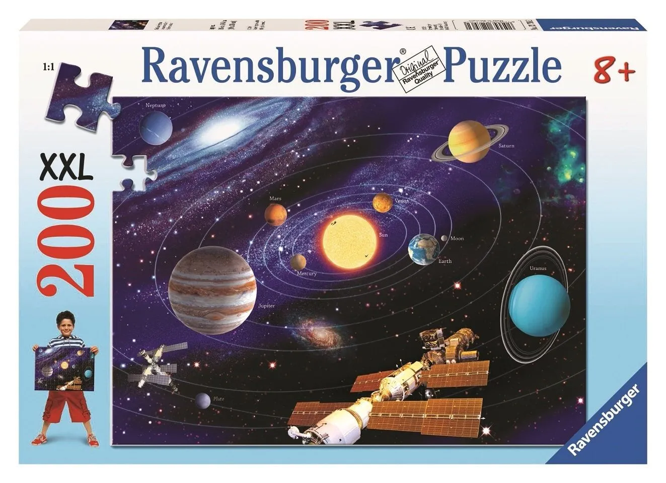 This is the Ravensburger The Solar System Puzzle 200pc Explore the solar system and outer space by rocket or explore our own plant earth by studying a real globe of the world. Our space and map collection provides valuable educational experience and also inspires the dreamer in each of us! Ravensburger 200 piece Puzzles are carefully quality tested and age-graded for children aged 8 yrs+ Ravensburger is a bestselling puzzle brand worldwide - with over 1 billion puzzles sold! Our children's jigsaw puzzles make ideal birthday gifts for boys and girls alike and wonderful Christmas gifts for the whole family to enjoy together. Our puzzles are crafted from the best quality FSC premium and time-tested materials. By using exclusive, extra-thick cardboard, combined with our fine linen-structured paper, we create a glare-free puzzle image and give young puzzlers the best fun and learning experience possible. Positively puzzling - from fun and educational learning experiences to happy and relaxing together times, jigsaw puzzling offers many positives for the whole family or as a rewarding solo activity! Finished Puzzle Size: 57 x 24 cm