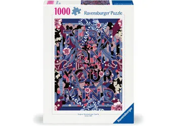 Discover the vibrant world of Gemma O'Brien with Ravensburger's "Turn on Your Mind" 1000-piece puzzle. Featuring O'Brien's signature style of blending bold typography with vivid colours and intricate patterns, this artwork brings an inspiring message to life.