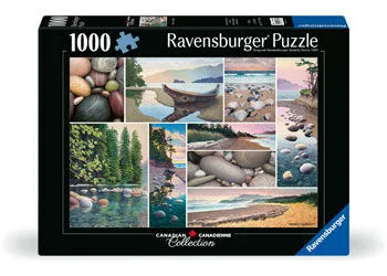 Witness these wonderous water scenes while sinking into the soothing tones captured in our “Canadian Collection: West Coast Tranquility” puzzle! Relax into your personal puzzle nirvana with the quiet calm of this lovely collage! Illustrations of Canada’s west coast highlight nature scenes ranging from breaking ocean waves to peaceful inlets and coves. The pastel palette extends to the rocks, smoothed by centuries of waves tumbling away rough edges. The sleek lines of the canoe are a result of steaming the hull to widen it. Part of our Canadian Collection series — a tranquil puzzle sure to bring you hours of stress-reducing enjoyment! This 1,000-piece jigsaw combines captivating imagery with our perfect interlocking fit for a most pleasurable puzzle experience! Our puzzles are crafted with an exclusive, extra-thick backing and linen-structured paper so the printed image is crisp and glare-free. Create memorable moments with Ravensburger premium puzzles! About the Artist: Born to a family of boat builders, Graham Herbert moved to Vancouver in his early 20s to work around boats and do more sailing, but became more interested in painting the West Coast Seascape. From his sky-lit studio nestled in the trees on Hornby Island, Graham captures the essence of West Coast living in his beautiful paintings. Here he distills the images and impressions he gathers on his travels to the many wonderful waterfront communities around the world. Specification - 1000 Pieces - Completed puzzle measures 70 x 50cm