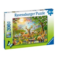 Ravensburger 13352-9 Wonderful Wilderness 200pc Puzzle This beautiful wildlife scene shows wildlife in all it's glory. Different species of wildlife all together each preparing for their next adventure. With the beautiful bluebells nestled in amonst the grass and the powerful pine trees in the background it's enough to make you want to climb into the puzzle with the amazing views and fragrances! Our 200 piece kids puzzles with XXL large pieces are crafted with premium quality materials and measure 49 x 36cm when complete. Great puzzles for Children 8 years old and up. Fully complies with all necessary UK and EU testing standards. Bestselling puzzle brand worldwide - With over 1 billion puzzles sold, our jigsaw puzzles make ideal gifts for women, great gifts for men and fit perfectly on our puzzle board. Our puzzles use an exclusive, extra-thick cardboard combined with our fine, linen structured paper to create a glare-free puzzle image and give you the best experience possible. #Positivelypuzzling - From fun family times together to long term health benefits and day-to-day mindful moments, there are so many positives about the humble Jigsaw! They make a great birthday gift or smashing Christmas gift Specification - Ages: 8+ - Pieces count: 200 - Box size: 34x23x4cm - Puzzle Size: approx. 49 x 36 x 0.2 cm