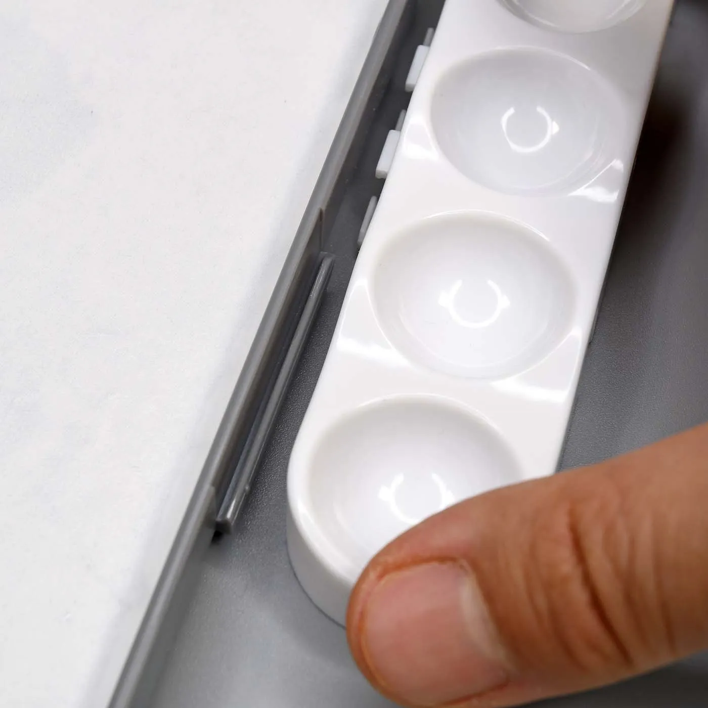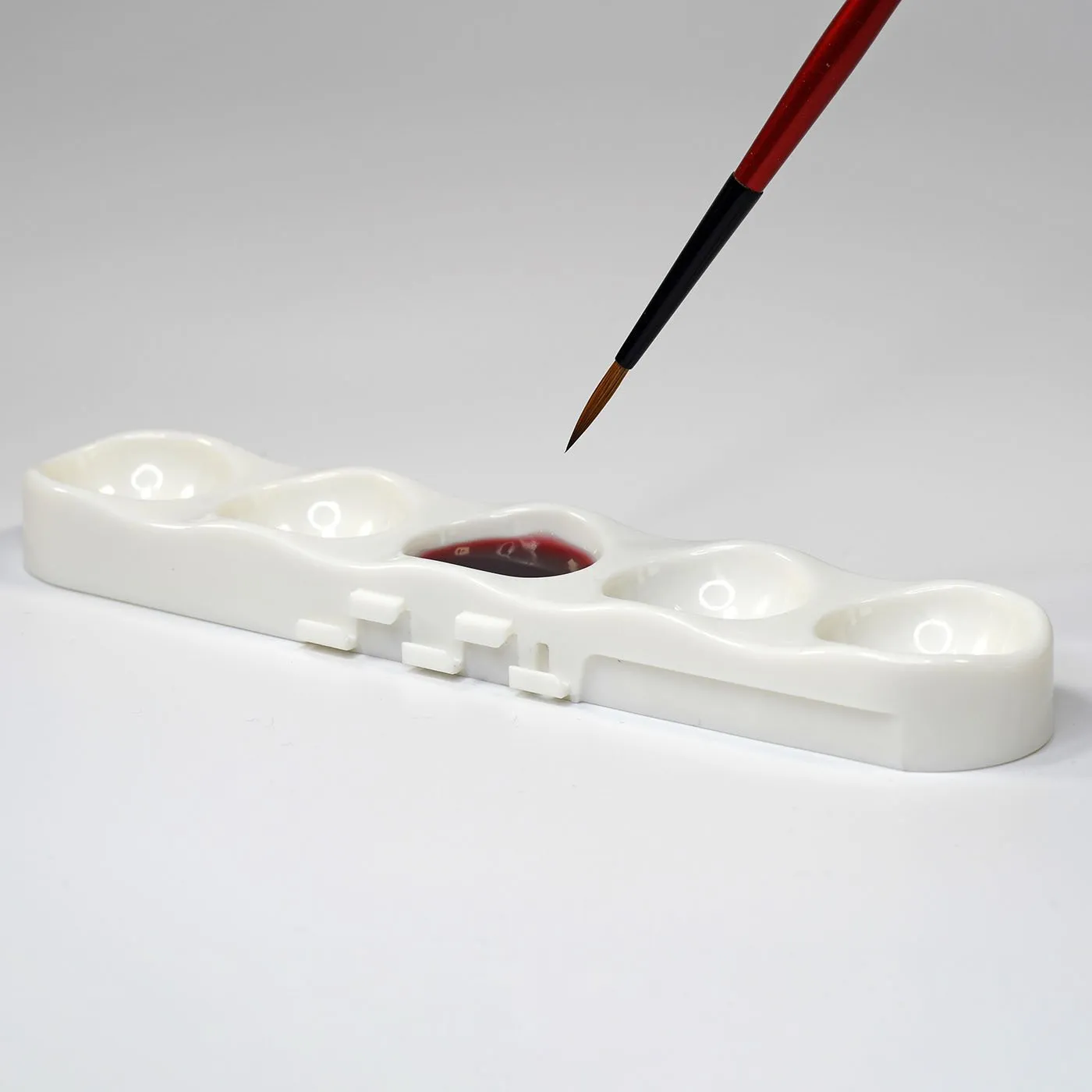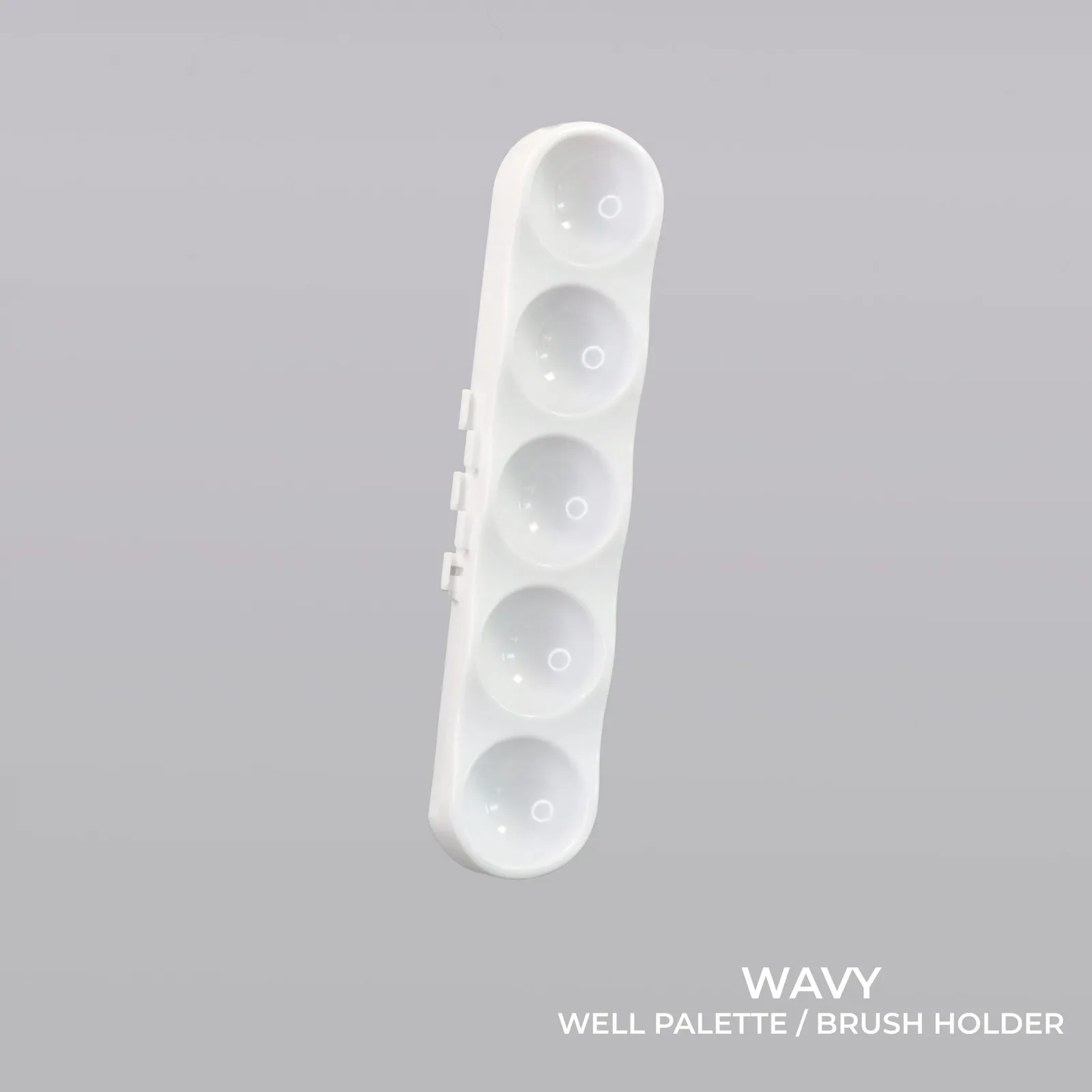 Perfect for mixing inks and washes, it also acts as a brush rest whilst you are painting with other brushes! We are working on a new surface finish to make it easier to clean than our existing design, and our v2 wavy works with the new sliding lock system, though space has been made for magnets should you wish to make it compatible with your v1 palettes.