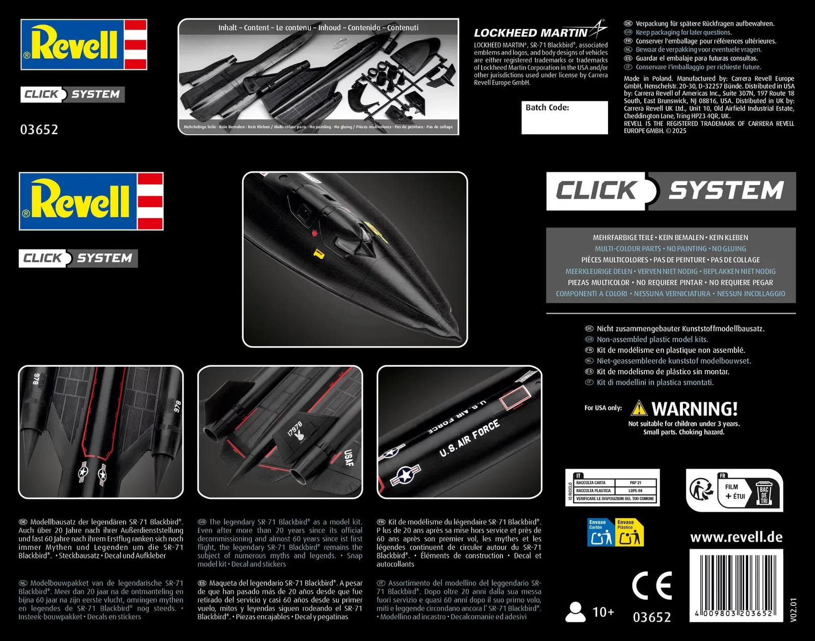 Model kit of the legendary SR-71 “Blackbird”. Even more than 20 years after its decommissioning and almost 60 years after its first flight, myths and legends still surround the SR-71.