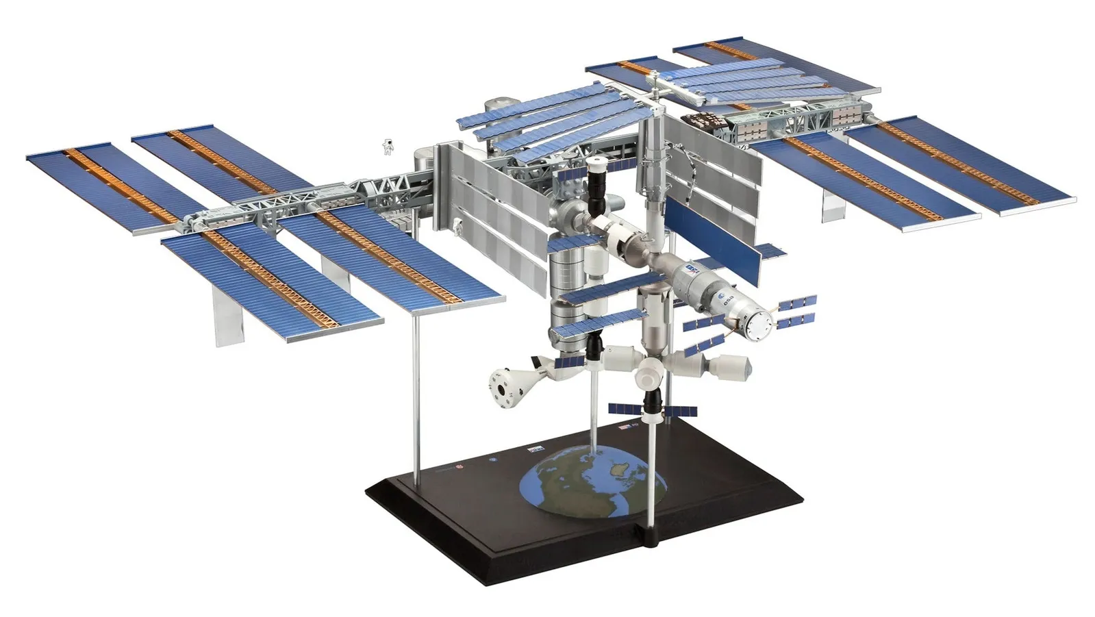 Discover the wonders of space travel: detailed ISS model kit in 1:144 scale! This extraordinary model impresses with its impressive scale of 1:144, which enables a precise representation of the real ISS. With 183 artfully designed pieces, this kit offers both a challenging and fulfilling building experience., it appeals to space enthusiasts, hobbyists and model building fans looking for an engaging and educational project. Scope of delivery: In the package you will find a variety of components that guarantee an authentic and breathtaking end result. The kit includes aluminum square bars and round bars to reinforce the structure and ensure stability and durability. As you assemble the ISS, you'll be supported by a display stand that showcases a beautifully detailed hemisphere. Experience the satisfaction of creating an impressive lattice tower structure, complete with movable, large solar panels and detailed module replicas. In addition, three astronaut figures, two Soyuz transport spaceships and three robot arms enrich the look and increase the overall effect of the model. Unleash your creativity with comprehensive decals that offer a wide selection of emblems. The ISS model kit is designed for model building enthusiasts of all skill levels. Beginners will enjoy learning new building techniques, while experienced model makers can demonstrate their expertise. The finished model serves a variety of purposes and is therefore ideal for display at home, in the classroom or at trade fairs. Both children and adults can use it as a centerpiece for imaginative play and space exploration, making it a fantastic gift for space enthusiasts or aspiring astronauts. This kit is characterized by exceptional features and attention to detail. The aluminum rods reinforce the structure and give the model stability and quality. The precisely designed solar panels, realistic module replicas and movable robotic arms give the end result an unparalleled authenticity. The detailed painted astronaut figures bring the ISS to life and allow you to recreate iconic space missions and scenarios. In addition, exclusive editions or official licenses could appeal to collectors and space history enthusiasts. Background information: The International Space Station is a masterpiece of human engineering and international collaboration. It serves as a habitat and laboratory in low Earth orbit. As you embark on this fulfilling model building journey, you will gain insights into the fascinating history of space travel and the incredible scientific achievements that the ISS represents. Our ISS model kit offers you a unique opportunity to discover the wonder of space travel and develop a deeper appreciation for space missions and the pioneering spirit of space agencies around the world. Capture the essence of space travel and bring the International Space Station to life with our meticulously designed model kit. Join the community of space enthusiasts an