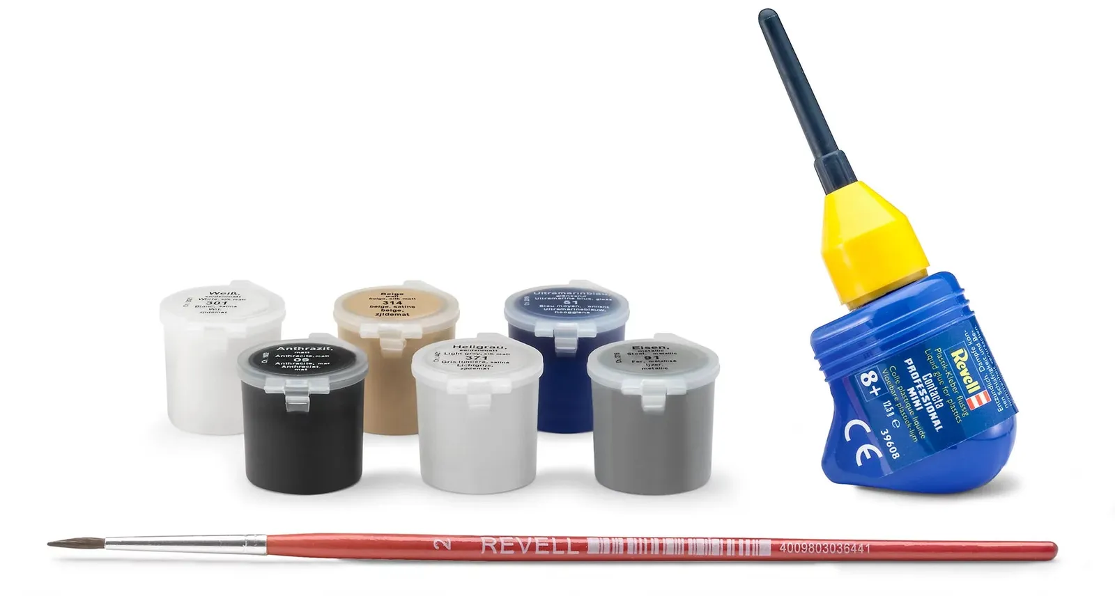 DANGER. Not suitable for children under 8 years. Solvent-based glue (12.5 g) and water-soluble paints included. Glue bottle with functional, sharp tip! Flammable liquid and vapor. May cause drowsiness and dizziness. Store under lock and key. Dispose of in accordance with local/regional/national/international regulations. Use under adult supervision. Read and follow the instructions with your child before use and keep them ready for reference. Contains: n-Butyl Acetate CAS 123-86-4