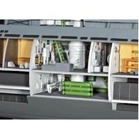 At the beginning of 1945, Germany had the most advanced submarine in the world at the time, the Type XXI. Thanks to numerous technical innovations, it was able to travel underwater without restriction, as the diesel engines sucked in the required fresh air through a special snorkel. The line shape designed for underwater travel and a three times larger battery capacity resulted in the sensational underwater speed of 17 knots. Other innovations included low-noise electric motors for crawling, highly sensitive tracking devices and 2 cm anti-aircraft turrets. The model provides an authentic insight into this groundbreaking submarine through the separated left outer hull wall. Many rooms are recreated in great detail, including the diesel and electric engines. Insights into the command center and crew living quarters give an idea of life under water. The decal includes interior details and identifiers for U2540, which entered service on February 24, 1945. After a short training trip, U2540 was sunk by the crew in the Flensburg Fjord on May 4, 1945. Raised again in 1957, it served the German Navy as the Wilhelm Bauer test boat. Today U2540 can be visited as a museum boat.