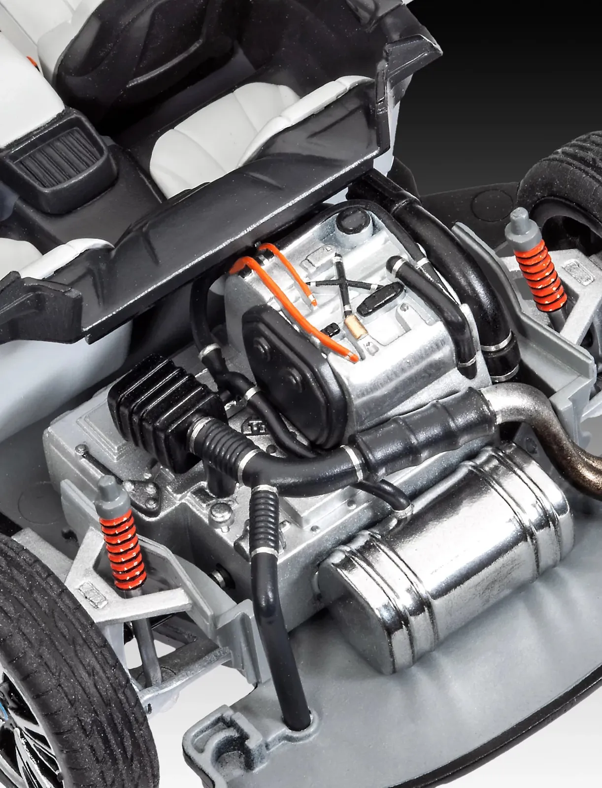 This model kit contains a true-to-original, multi-part body, a multi-part 3-cylinder engine and a very detailed electric motor. You also have the choice to build the doors open or closed. With a detailed interior, textured front seats, authentic jump seats, a separate movable tailgate, detailed wheel suspensions and chrome parts such as rims and reflectors, this kit offers a wealth of detail. The comprehensive decals include international license plates (D, A, NL, F, B, CH, GB, I, RUS) for an authentic look.