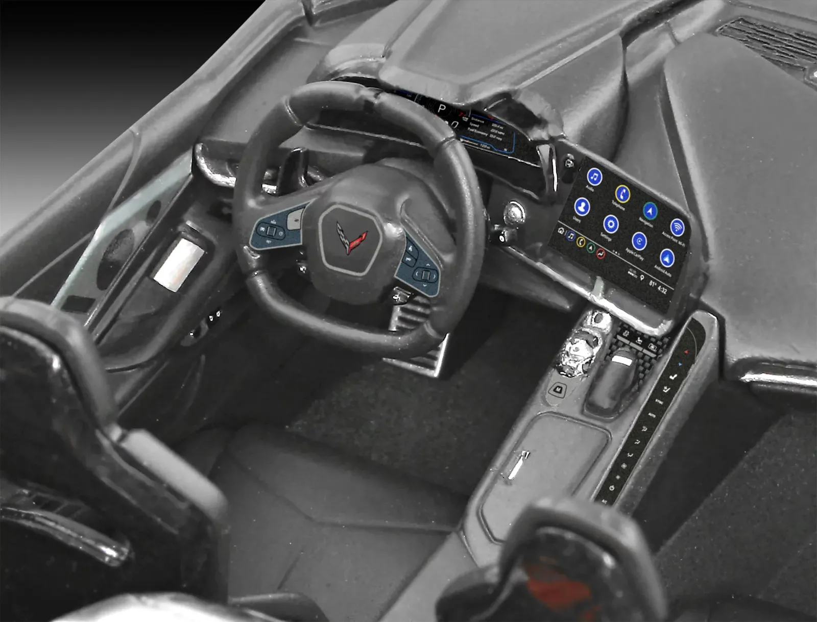 New forms : Each part of this kit was designed specifically for the Corvette Stingray C8 Coupe to ensure the most authentic replica possible. - Mid-engine design : This model represents the first Corvette with a mid-engine, a milestone in the history of sports cars. - Strength and elegance : With 500 horsepower, it represents one of the most powerful versions of the Corvette.