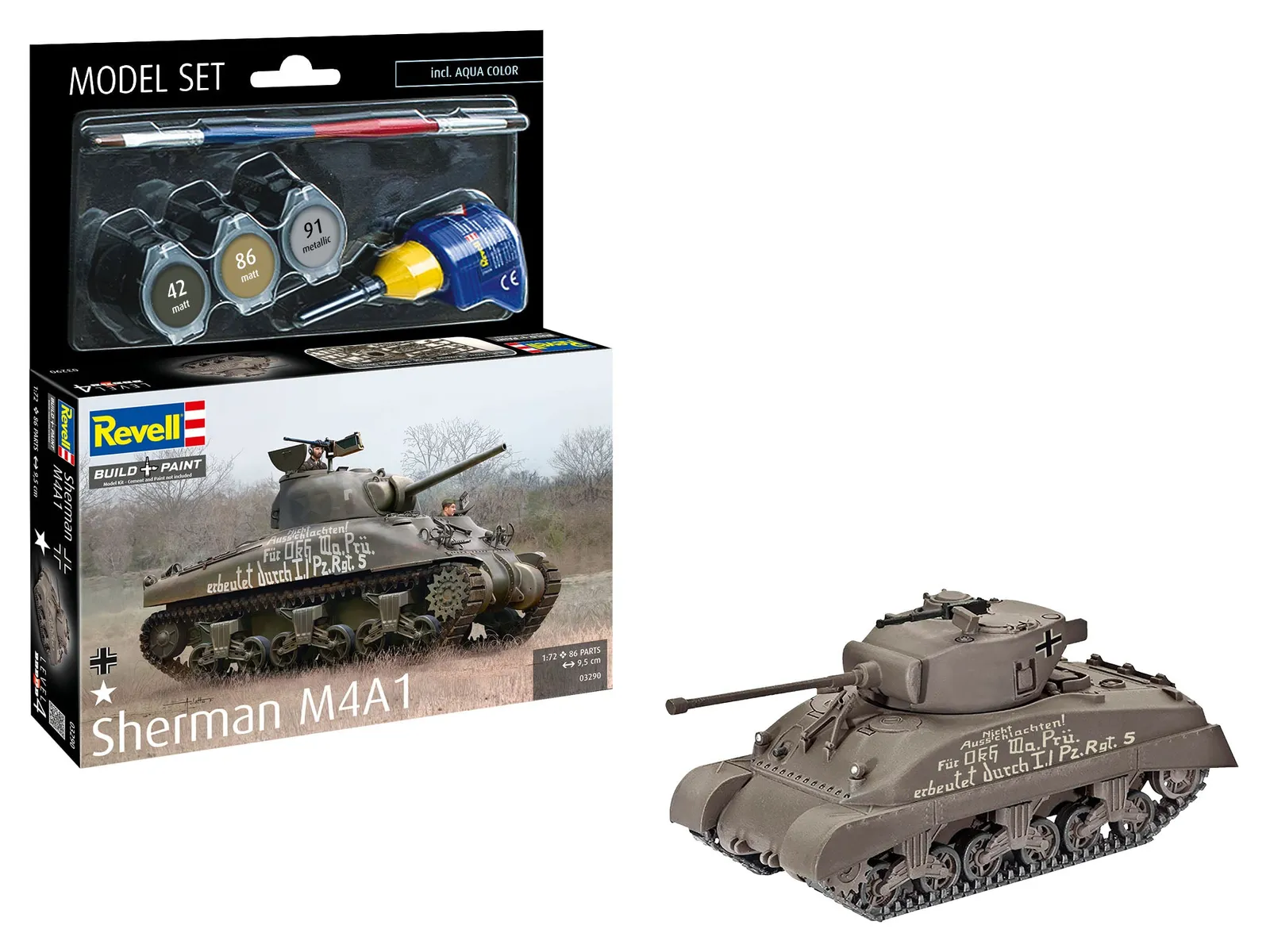 It was the heaviest and most powerful tank of the Second World War that was built in series: the Tiger II, reverently called the "King Tiger". With this model set you can bring the version with the striking Henschel tower onto your craft table. Since this is a "model set", you can immerse yourself in the story straight away: the matching Aqua Color base colors, a brush and the required glue are already included. Ideal for beginners, returners or as a gift for model builders interested in history.