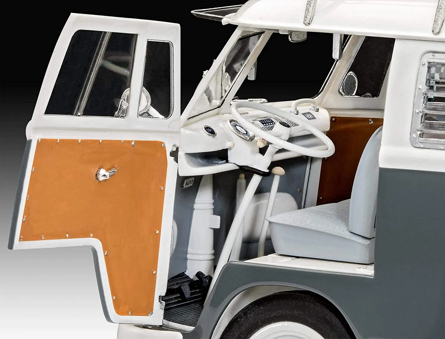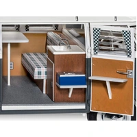 The T1 Camper model kit impresses with its attention to detail and authenticity. The multi-part body, interior furniture and movable doors bring the legendary camper to life. With the included decals you can customize the model and attach various license plates (D, NL, F, GB, B, A, CH, I, S and USA).