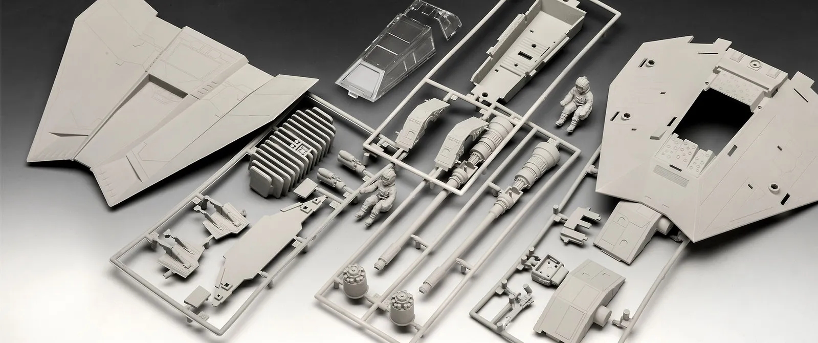 Very simple model kit of the fast, modified T-47 Airspeeder. The T-47, called Snowspeeder by the rebels, is used in the battle on the ice planet Hoth to keep the approaching AT-ATs in check.