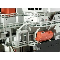The kit of the German research vessel Meteor is characterized by its highly detailed components and authentic replicas of the original structures. The precisely reproduced crane and lifting systems, as well as the antenna and radio mast, offer a deep insight into the technological equipment of the real ship. This kit not only represents a piece of maritime history, but is also a testament to the technological advances and innovative spirit of marine research.
