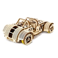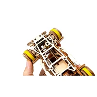 The Roadster is a machine that plays in a league of its own. Powered by a rubber band motor, the model moves forward and backwards up to one meter. Thanks to the retraction mechanism, this model makes you feel like you're behind the wheel of a real car. Our laser-cut wooden model kits combine the highest precision with effortless assembly that is simply a pleasure. With clever features that bring the wooden models to life, they offer a fascinating experience.
