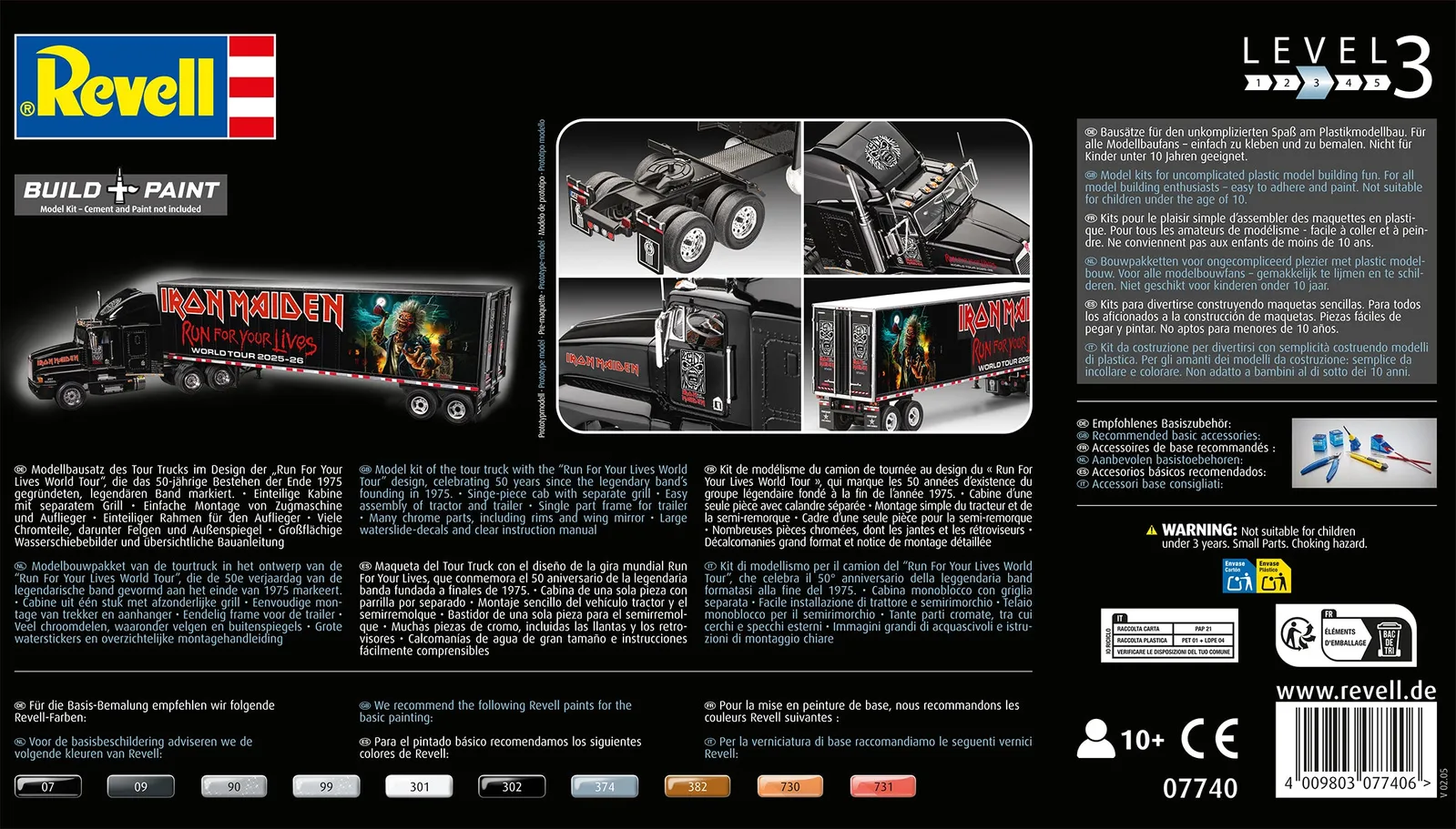 Assembly is straightforward thanks to the illustrated, multilingual instructions. There is enough room for your own creativity to individualize the truck to your taste. A great project for quiet hours or as a gift for every Iron Maiden fan!
