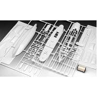 Plastic model kit (not assembled), illustrated, multilingual assembly instructions, decals, base colors (Revell Aqua Color), glue (Revell Contacta Professional Mini), brush