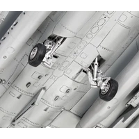 In addition to the plastic model kit (not assembled), the package includes illustrated, multilingual construction instructions and decals for individual design. The kit also contains numerous details such as pylons with 6 GBU-12 bombs, a detailed cockpit with ejection seat, a detailed landing gear, thrusters, jamming device, additional tanks, cruise missiles and guided missiles.