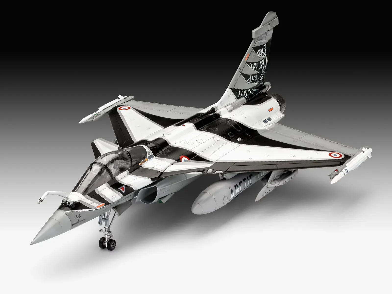 The highlight of the Dassault Aviation Rafale C model kit is its incredibly detailed parts and features. The replica includes authentic weapon loads, additional tanks and various decal options to represent two different versions of the Rafale C.