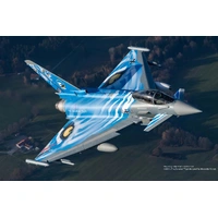The Eurofighter Typhoon "Bavarian Tiger 2021" is a twin-engine multi-role fighter aircraft with an impressive speed of 2.25 Mach and a maximum takeoff weight of 55,000 pounds. It was developed by the European Fighter Aircraft (EFA). The first examples were delivered to the Bundeswehr in 2003. Kit of the Eurofighter Typhoon with the distinctive design as “Bavarian Tiger 2021”. Elaborate kit in 1:72 scale and level 4.