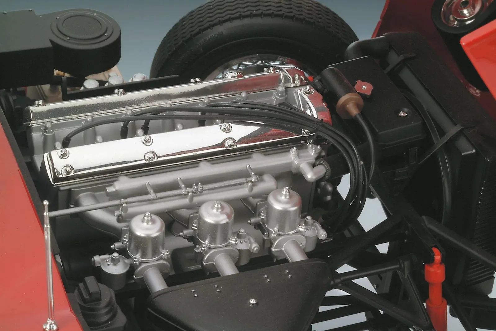 This model stands out for its impressive level of detail and authenticity. The moving parts and detailed front suspension with springs create a realistic replica of the original Jaguar E-Type. In addition, there are the chrome-plated spoke wheels and the metal axle, which give the model a high-quality and authentic look.