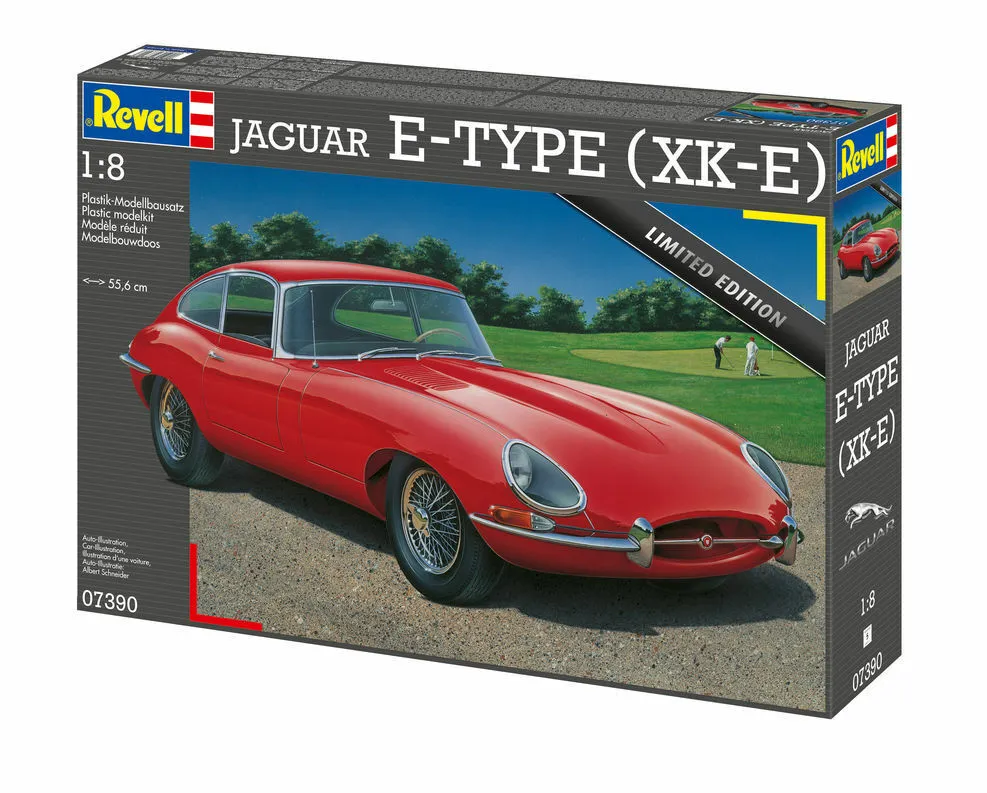 The Jaguar E-Type was a landmark of the British automotive industry in the 1960s and is now a sought-after collector's item. With its sensational, racy and at the same time elegant design, the E-Type revolutionized sports car design. This model kit allows you to recreate this era of automotive design and bring a piece of history to life.