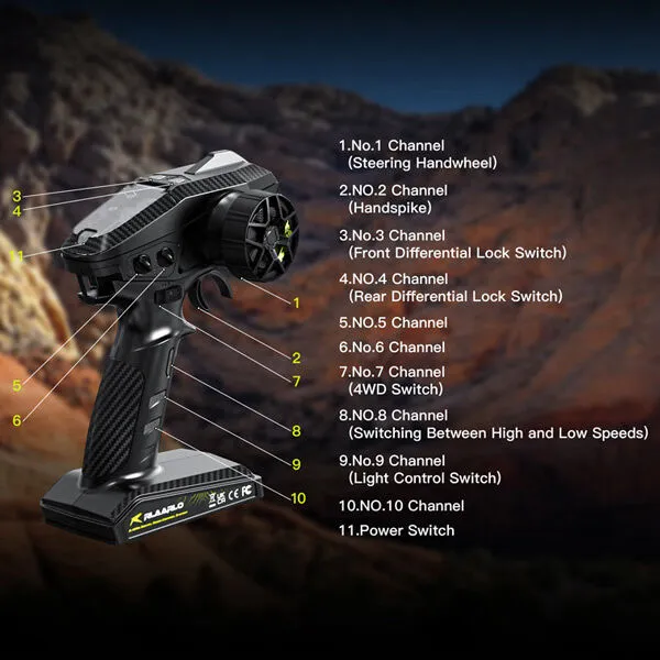 Front and Rear Differential Design: The axle adopts 1.2CM gears to enhance durability. These can lock and unlock the front/rear differentials to meet different driving needs and terrain. Unlocking the differentials during driving will provide smoother steering and a tighter steering radius. When the terrain becomes more challenging, locking the rear differential or locking the front differential will allow the tires to obtain better power distribution and allow the vehicle clear the obstacle easier