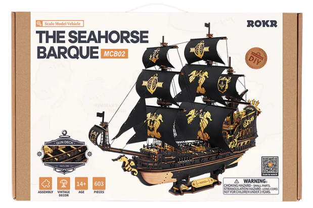 ROKR challenges you to build this majestic, Baroque-era warship with its intricate carvings, commanding sails, and a fierce seahorse figurehead. This 603-piece DIY puzzle is an immersive journey into the golden age of naval warfare.
