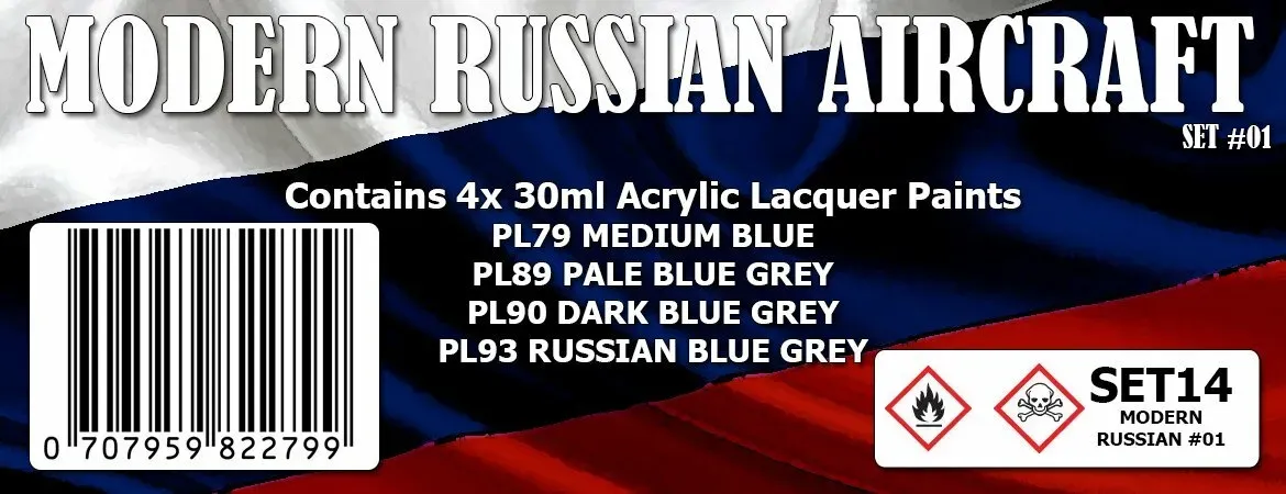 This Colour Set contains 4x 30ml Premium Acrylic Lacquer paints suited for various Modern Russian Aircraft