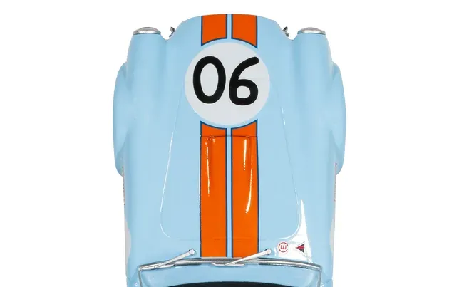 Experience the raw power of the Shelby Cobra in its legendary Gulf livery with this stunning high-detail scale model addition. This 1:32 scale electric replica captures the iconic blue and orange colour scheme that became synonymous with motorsport excellence, bringing American muscle car heritage to your home racing circuit with authentic precision and undeniable presence.