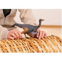 Watch out! The Gallimimus is about to run by! Yikes - it's disappeared again! The dinosaur can run so fast that you can easily lose sight of it. Maybe that's why you should keep it close. That way, you can take your time admiring this dino, which has feathers on its front legs, an elegant long neck and a thick beak, like a bird. It can't fly, but the Gallimimus doesn't need to, because it can just run away at lightning speed instead!