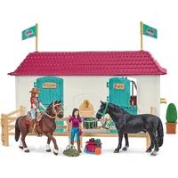 This horse-themed playset can be combined with the Riding Center, Trip to the Horse Paddock, and other HORSE CLUB playsets from schleich® for a world without boundaries (each sold separately).