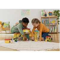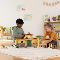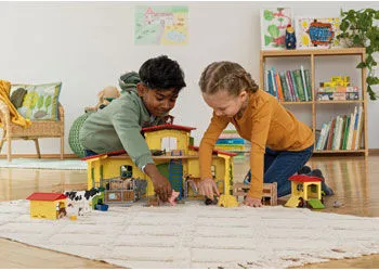 Cock-a-doodle-doo! Our rooster is awake. After a restful night in the chicken coop of the schleich® FARM WORLD, the rooster loves to hop onto the rooftop to tell everyone it's time to get up. So the mother hen doesn't even need an alarm clock anymore and can go foraging for seeds and other food in the fenced outdoor area. After all, it's the early bird that catches the worm! And when the rooster comes down from the roof to find food together with the hen, you can open the roof and look inside the house. And look: a few of the eggs are already hatching, and the cutest chicks in the whole world are starting to explore, taking their first steps. Can you help them?