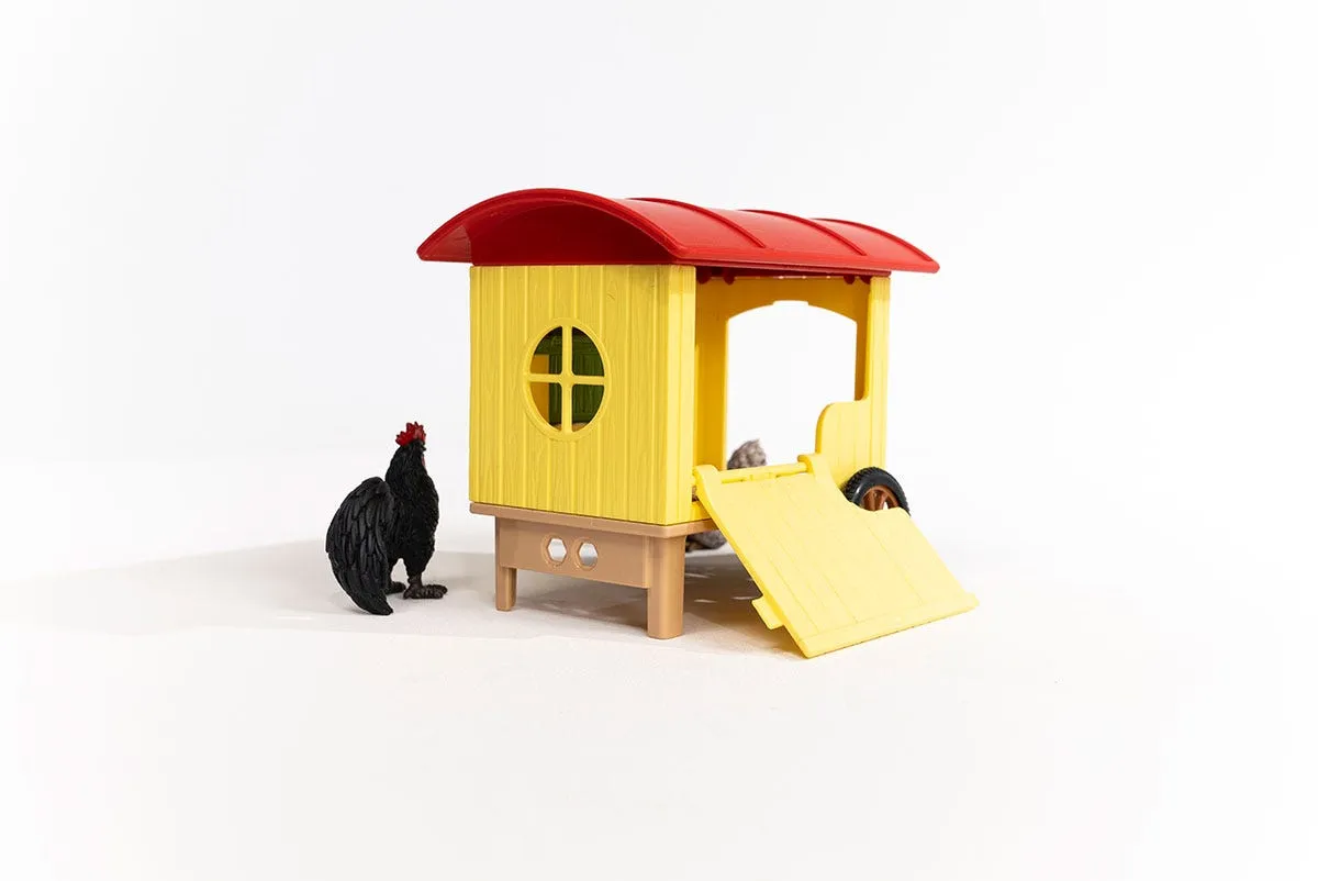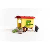 Cock-a-doodle-doo! When the rooster up on the roof crows to wake his family in the schleich FARM WORLD chicken coop, you know that a new day has begun. At this time of day, the mother hen also starts looking for feed, and takes her little chicks out to explore the world. Quite a lot going on for the time of day - maybe you can help out? This item is part of the FARM WORLD theme world and is suitable for children between the ages of 3 and 8.